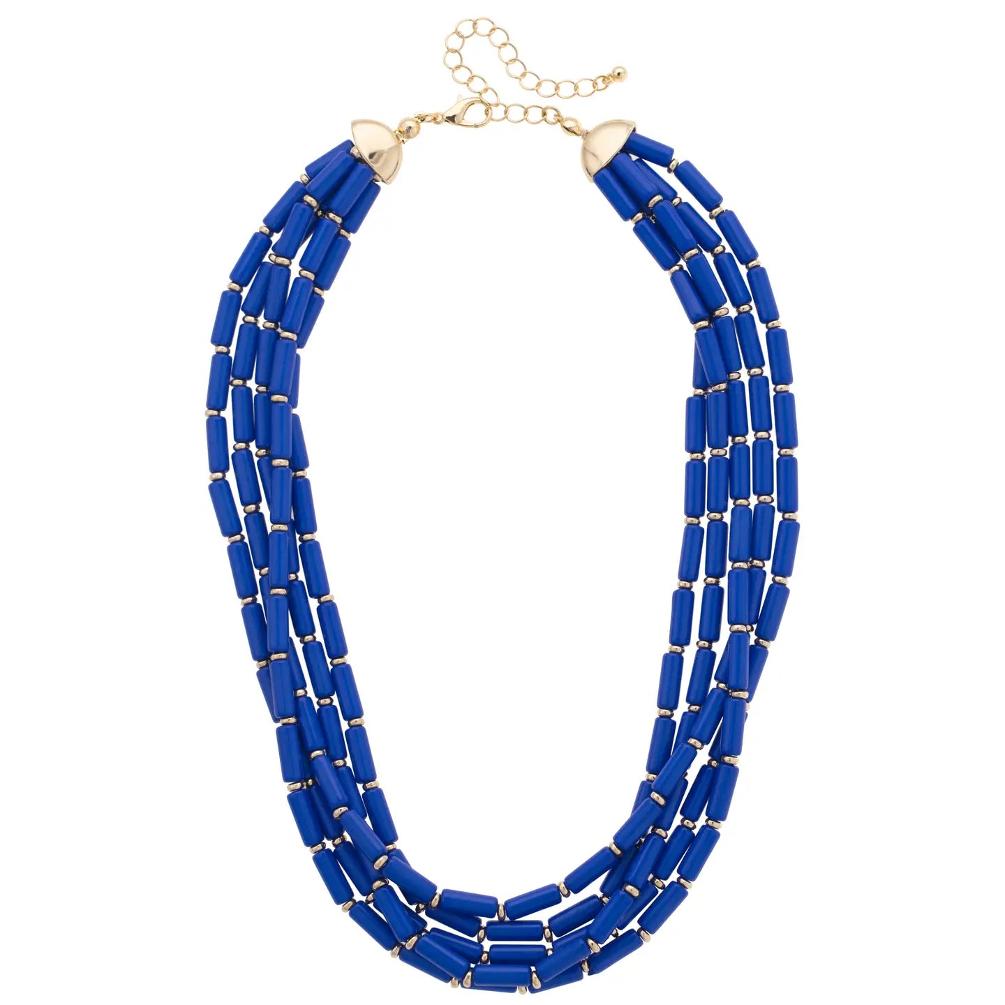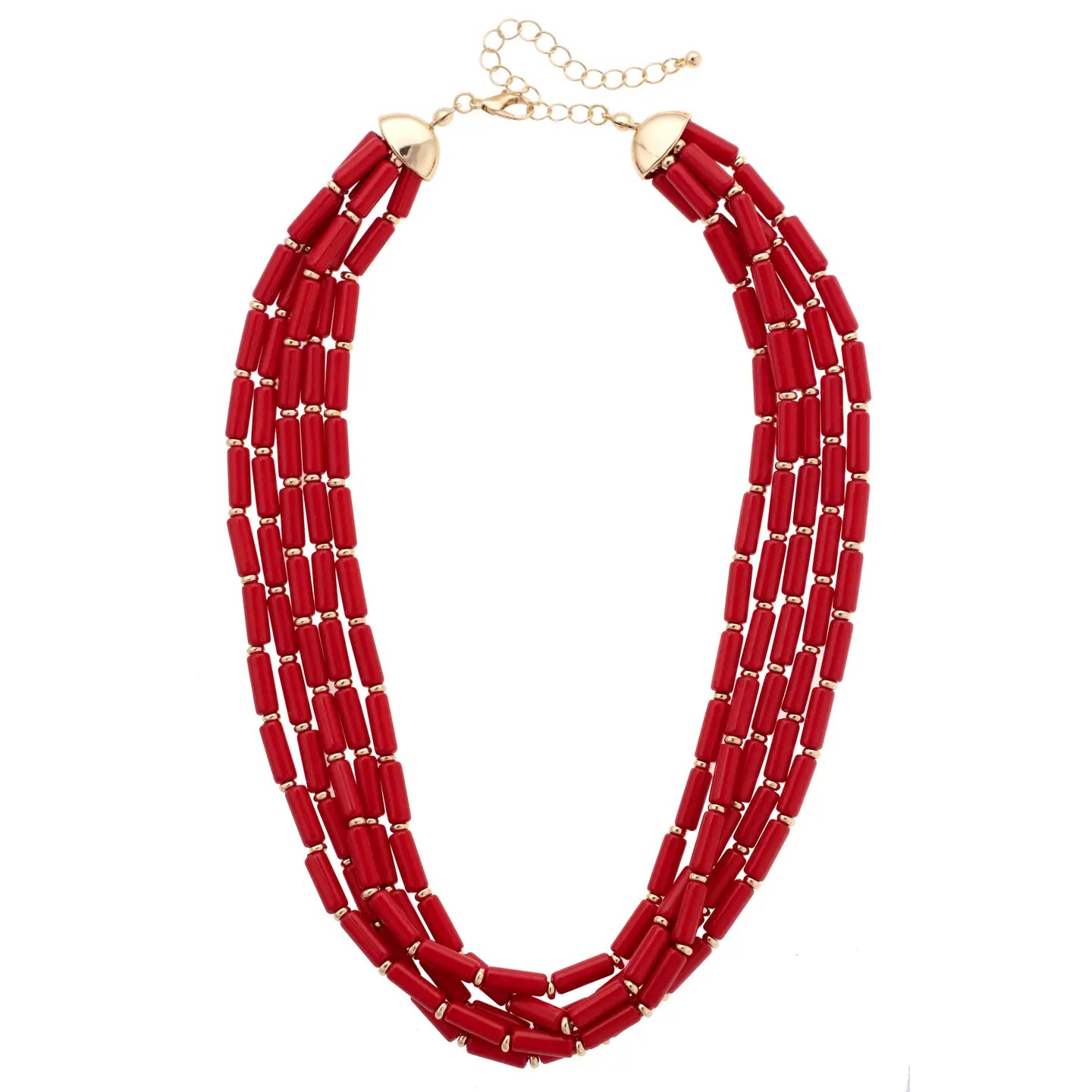 Rich colorful beads in multiple strands make this necklace a vibrant, eye-catching accessory. It’s the perfect pop of color for any outfit.