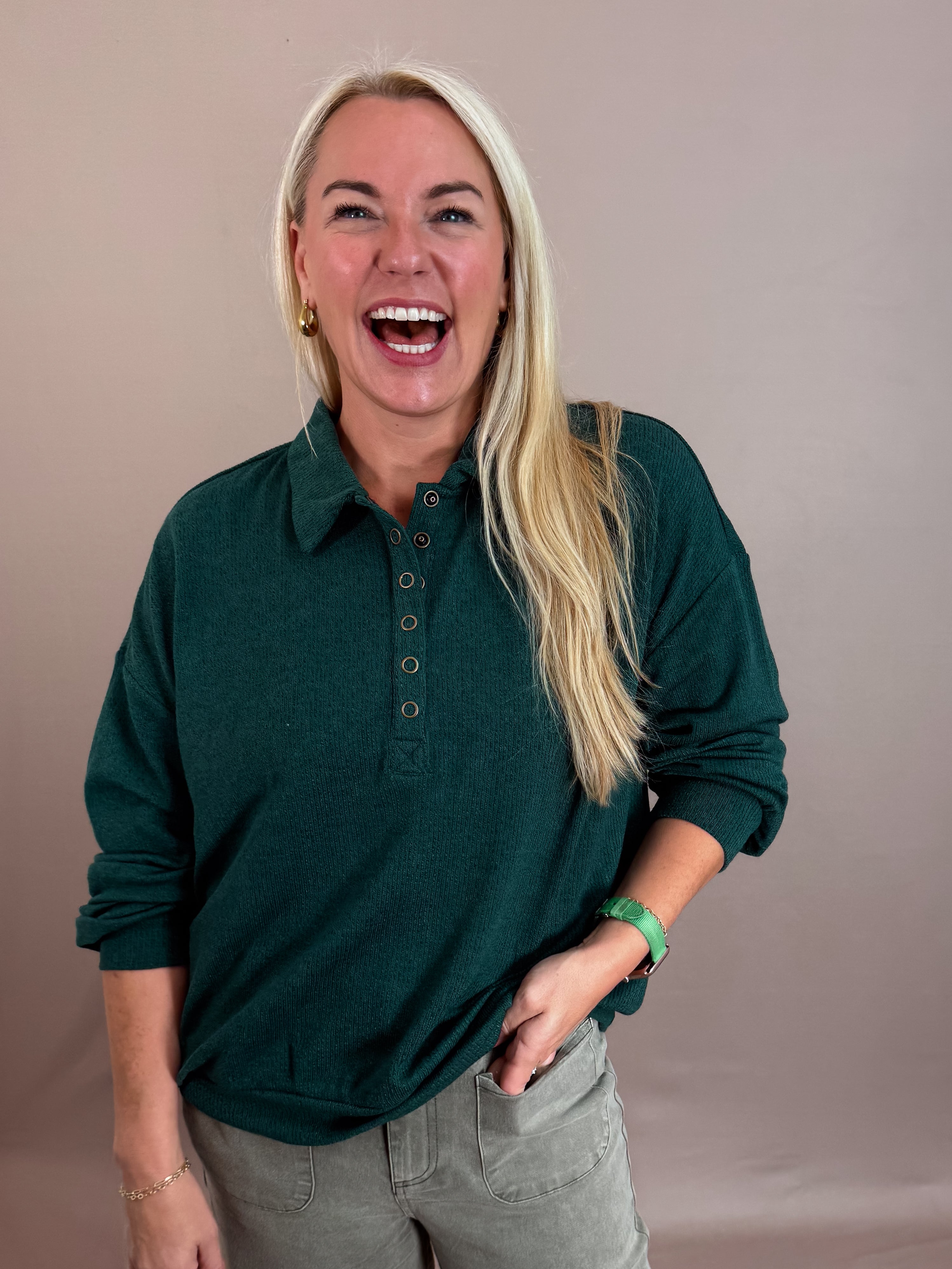 The Lilia Knit Top is your new go-to piece for effortless style with a playful twist. Featuring a collared half snap button Henley neckline, it adds a dash of charm to your everyday look. Designed with long sleeves and a relaxed drop shoulder fit, this solid knit top combines comfort with casual cool. Lightweight and unlined, it’s perfect for layering or wearing solo on breezy days. Whether you’re dressing up or down, the Lilia Knit Top brings cozy vibes and easy sophistication to your wardrobe.