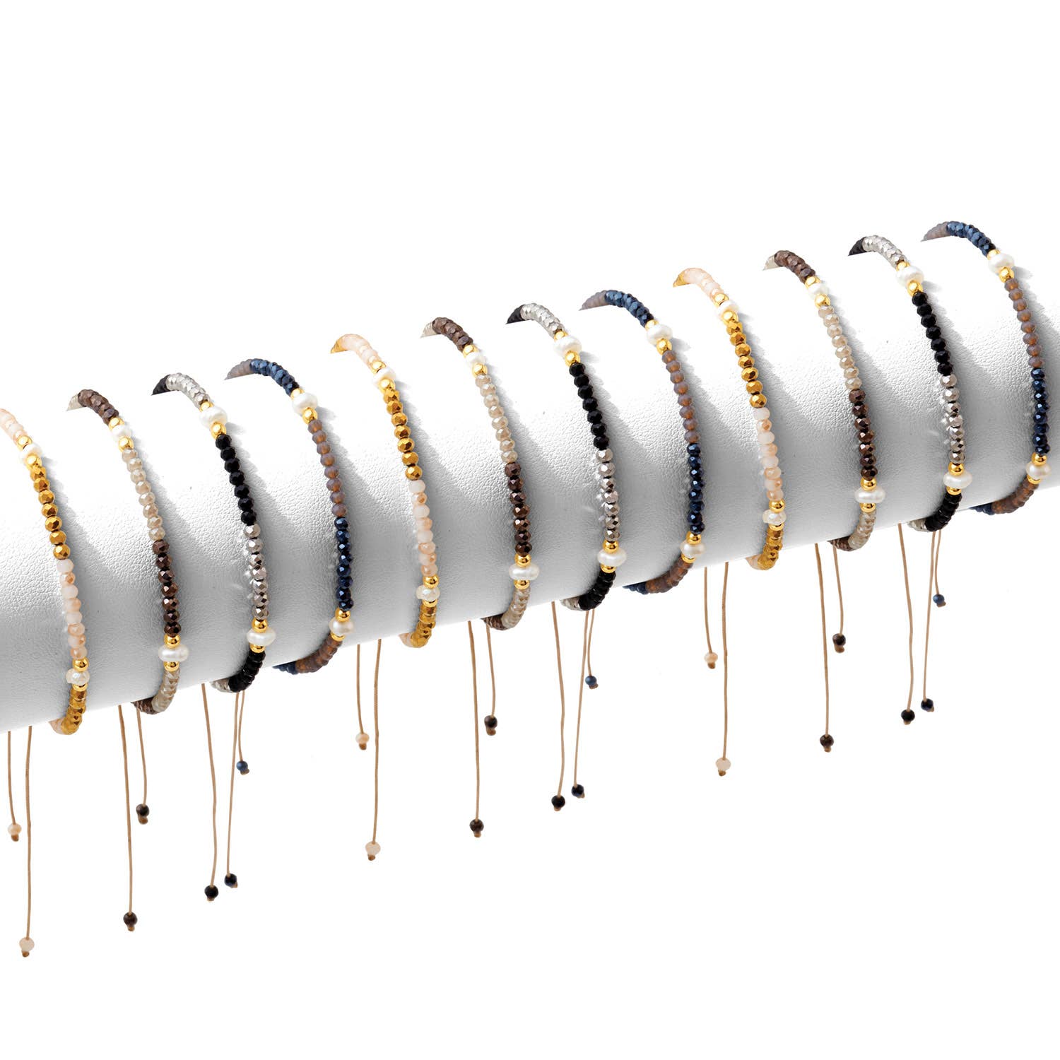 Sparkle and shine with this delightful dozen of adjustable crystal bracelets! Each piece features lustrous freshwater pearls paired with shimmering glass crystals, all strung on soft cotton for comfort. The brass-plated accents add a touch of elegance, while the adjustable design ensures a perfect fit for any wrist. These beauties come ready to gift or display on charming folding cards—ideal for sharing with friends or stocking your jewelry collection. With twelve bracelets in one set, you'll have plenty of sparkle to go around!