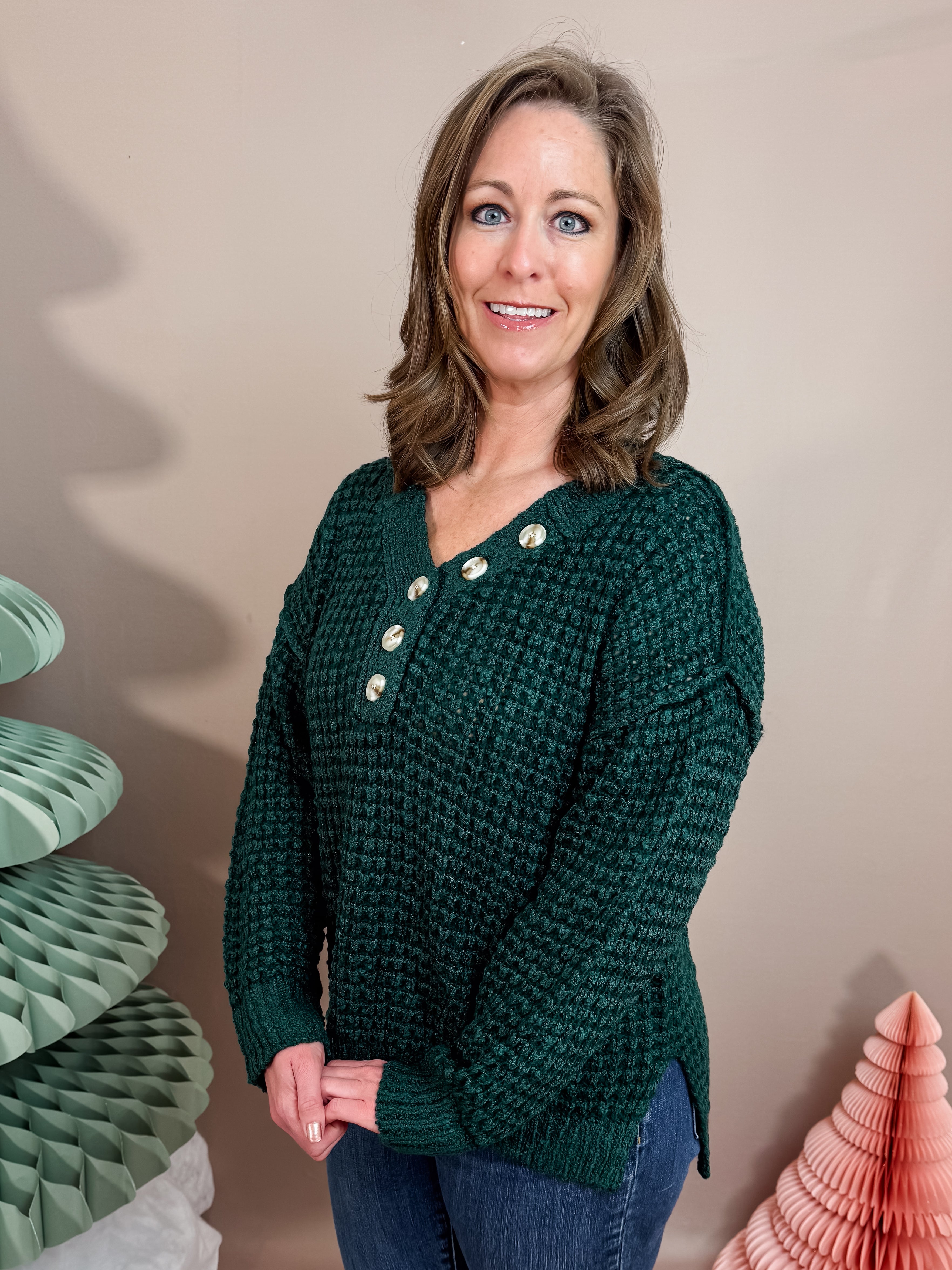 Meet the Seren Henley Top—where sophistication meets fun. This cozy knit features a refined henley neckline paired with effortlessly cool dropped shoulders that keep things relaxed. The real showstopper? Oversized buttons that bring a cheeky, playful vibe to your everyday wardrobe. Strategically placed side slits add movement and flow, while the premium knit fabric wraps you in all-day comfort. Dress it up for evening or keep it casual—this versatile piece is ready for whatever your day throws at you.