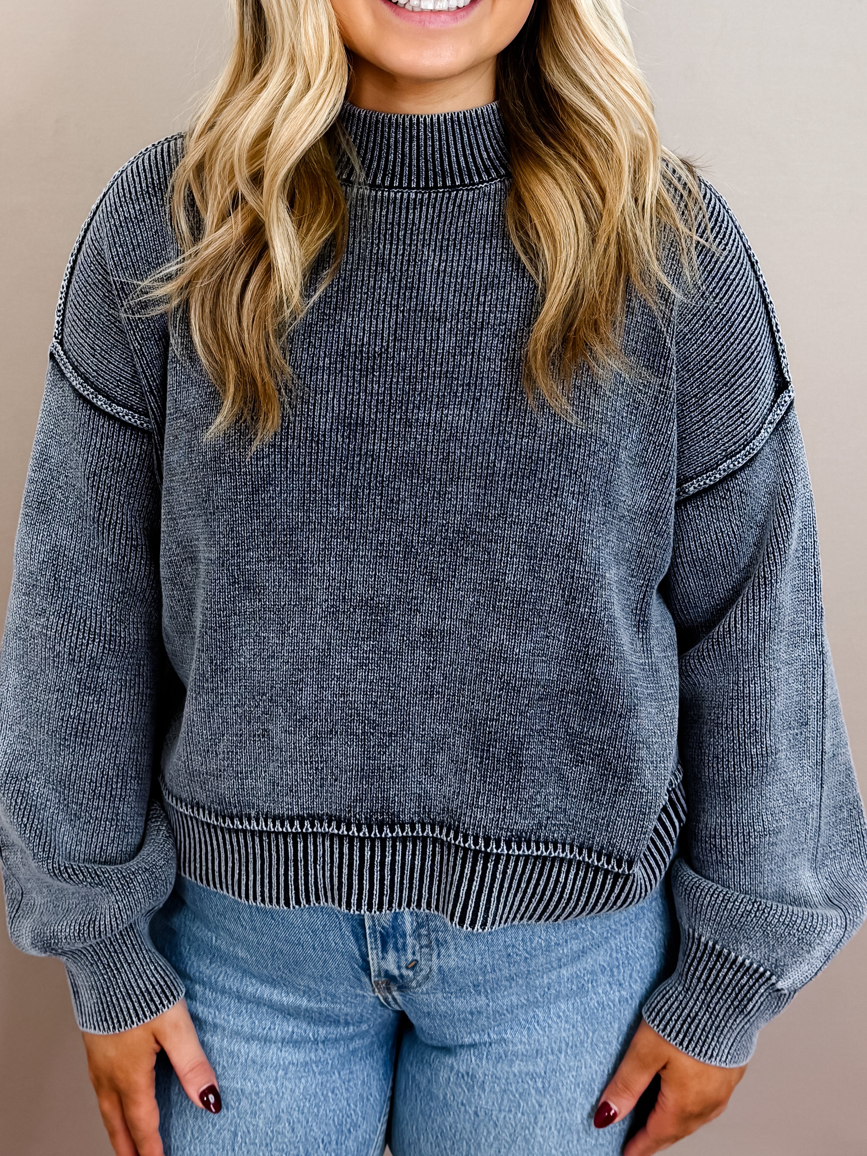 The Brylee Mock Neck Pullover brings cozy charm with its playful acid-washed pattern, making each piece uniquely yours as tones may vary. Featuring a snug mock neckline and comfy long sleeves, it offers warmth without sacrificing style. The relaxed drop shoulder design adds an effortless, laid-back vibe perfect for casual days or evening chills. Knit for softness and comfort, this pullover sweater is your go-to for a fun twist on everyday layering. Add a splash of vintage-inspired flair to your wardrobe and enjoy the cozy confidence it brings!