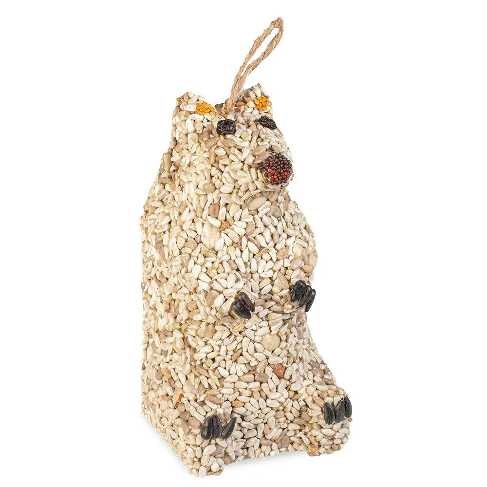 Bring a touch of fun to your garden with the Snow Bear Bird Feeder, a delightful polar bear crafted from solid safflower and sunflower seeds. Designed with a sturdy jute hanger, it’s easy to hang outdoors where birds can enjoy a tasty treat. Measuring 3.24" x 4" x 6.5", this playful feeder adds charm while nourishing local wildlife, making it a perfect gift for bird lovers and nature enthusiasts alike.